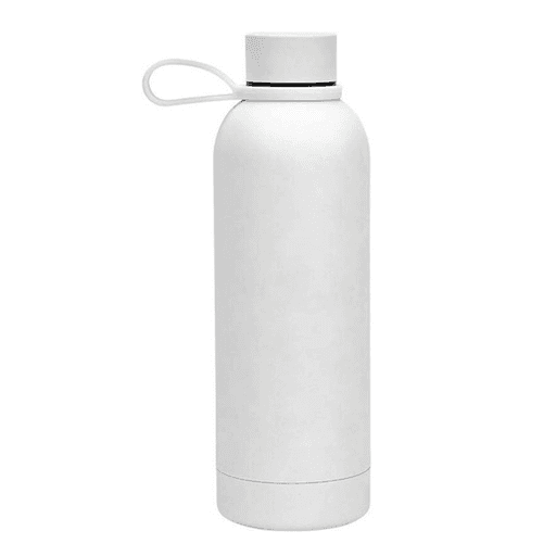This 500 ml double-wall stainless steel bottle is designed for durability and temperature retention, featuring a 304 stainless steel inner wall and 201 stainless steel outer wall with a soft-touch rubber finish. Vacuum insulated to keep beverages hot or cold, it includes a screw-on 201 stainless steel lid with a convenient silicone carry loop, making it perfect for everyday use, travel, or outdoor activities.