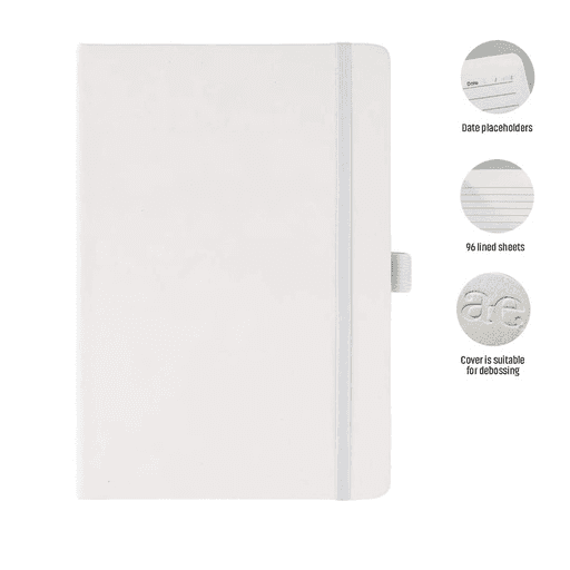 Giftology A5 Promotional Notebook with PU Cover and Pen Holder. Contains 192 pages of 70g paper. Comes in 13 colors