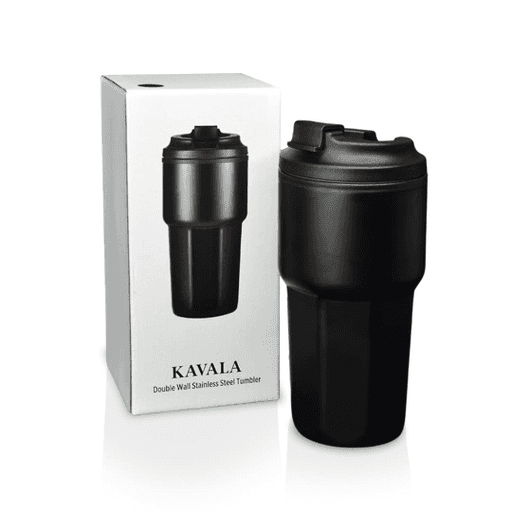 Kavala is a durable travel tumbler styled coffee mug with 500ml capacity. The mug has a double wall construction with stainless steel outer wall and food-grade polypropylene inner wall providing convenient portability and durability. Designed to fit most beverage holders in cars.