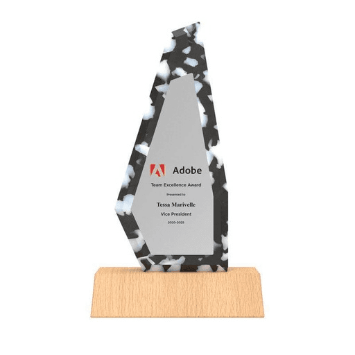 Crafted from FSC-certified solid beech wood, RCS-certified recycled aluminium cans, and RCS-certified recycled plastic bottle caps, this award combines sustainability with elegance. Measuring 14.2 × 7.2 × 25.5 cm, it comes packaged in a recyclable and FSC-certified paper gift box featuring a black top and kraft paper-colored bottom, offering a stylish and eco-conscious presentation for recognizing achievement.